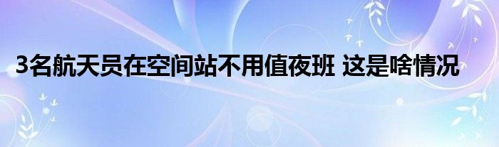 大家好.我是互联百科的羽儿,现在为大家解决以上3名航天员在空间站不用值夜班 这是啥情况的问题.