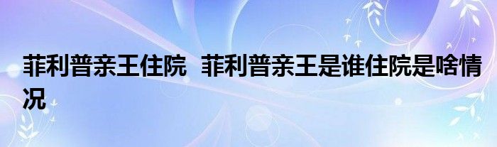 大家好.我是互联百科的羽儿,现在为大家解决以上菲利普亲王住院 菲利普亲王是谁住院是啥情况的问题.