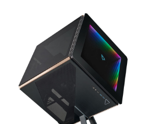 前者的一个例子是他们最近发布的REGIS902外壳,这是一个立方体形状的外壳,前面板上有Azza所谓的“无限镜”RGB。REGIS有一个铝制支架,可以将外壳从地面抬起,使其更加豪华,在外壳的两侧和前面有三个黑色玻璃面板,底部有两个拉丝铝网面板,以允许冷却且易于取用,边缘饰有金色饰边。