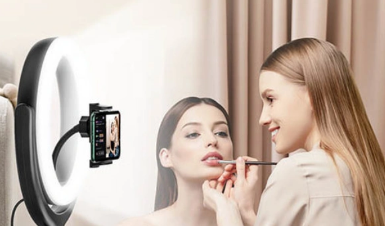 当您在光线不足的情况下,使用TaoTronics环形灯创建专业的照明设置,以照亮您的主题以获得出色的照片/视频效果。生成30种专业灯光效果,以3种色温和10种亮度级别服务于各种拍摄场景。拍摄华丽自拍、录制化妆教程、进行视频会议等的必备工具。使用环形灯投射出迷人的光芒,减少阴影并提亮肤色。