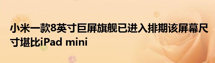 1月24日消息,博主@数码闲聊站爆料,小米一款8英寸巨屏旗舰已进入排期,该屏幕尺寸堪比iPad mini(新款iPad mini尺寸为8.3英寸),预计不久就会跟大家见面。