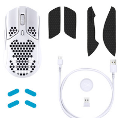 HyperX展示了PulsefireHaste无线游戏鼠标,这款游戏鼠标有黑色或白色可供选择。正如HyperX的营销图片所示,两种颜色均采用蜂窝六角外壳设计,以减轻鼠标的整体重量。出于某种原因,白色型号比黑色型号重1克。尽管如此,如果您使用捆绑的HyperFlexUSB-C电缆,白色型号在未连接电缆的情况下仅重62克和96克。