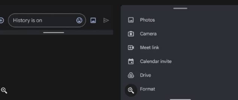 当你点击+按钮时,你会看到照片的快捷方式(多余的,因为照片图标仍然在栏上)、相机、当你需要进行视频通话时的会议链接、日历邀请、驱动器和格式这会显示文本的格式选项。这似乎不是应用程序的重大变化,但如果您希望底部栏有更多空间,这是一个受欢迎的变化。但是,如果您更喜欢将快捷方式放在前面和中间,那么这可能不适合您。