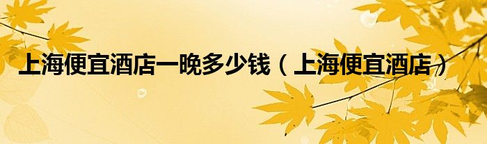 上海便宜酒店一晚多少钱(上海便宜酒店)