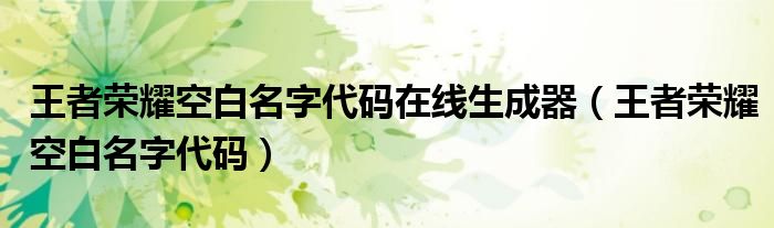 关于王者荣耀空白名字代码在线生成器,王者荣耀空白名字代码这个很多人还不知道,今天菲菲来为大家解答以上的问题,现在让我们一起来看看吧!