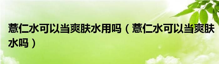 大家好,小晋来为大家解答以下问题,关于薏仁水可以当爽肤水用吗,薏仁水可以当爽肤水吗很多人还不知道,今天让我们一起来看看吧!