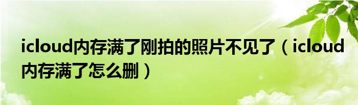 大家好,小晋来为大家解答以下问题,关于icloud内存满了刚拍的照片不见了,icloud内存满了怎么删很多人还不知道,今天让我们一起来看看吧!