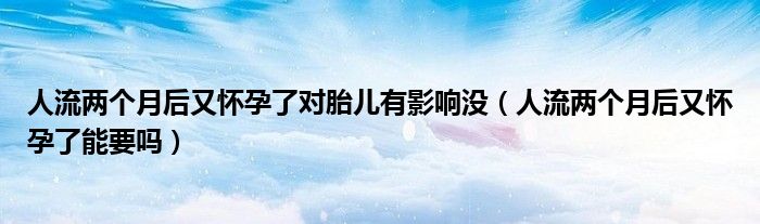 大家好,乐天来为大家解答以下的问题,人流两个月后又怀孕了对胎儿有影响没,人流两个月后又怀孕了能要吗很多人还不知道,现在让我们一起来看看吧!