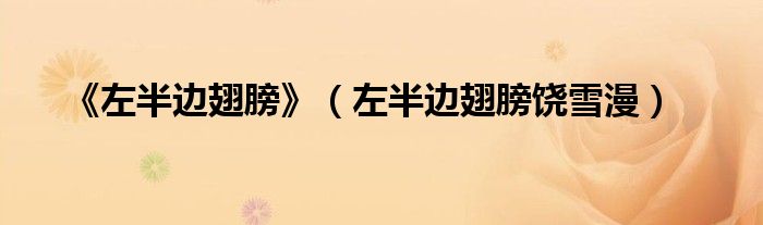 关于《左半边翅膀》,左半边翅膀饶雪漫这个很多人还不知道,今天菲菲来为大家解答以上的问题,现在让我们一起来看看吧!