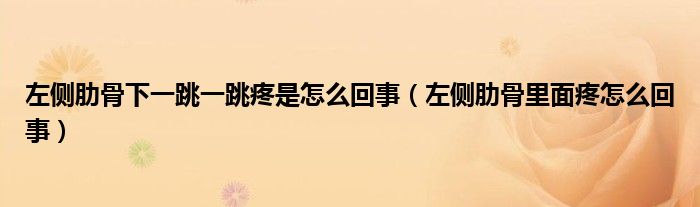 大家好,乐天来为大家解答以下的问题,左侧肋骨下一跳一跳疼是怎么回事,左侧肋骨里面疼怎么回事很多人还不知道,现在让我们一起来看看吧!
