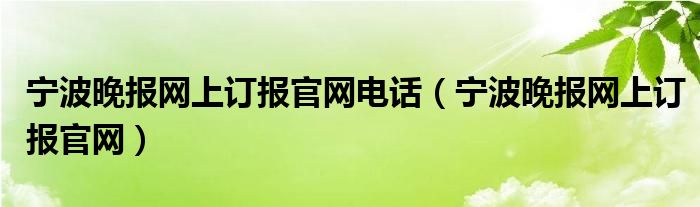 关于宁波晚报网上订报官网电话,宁波晚报网上订报官网这个很多人还不知道,今天菲菲来为大家解答以上的问题,现在让我们一起来看看吧!