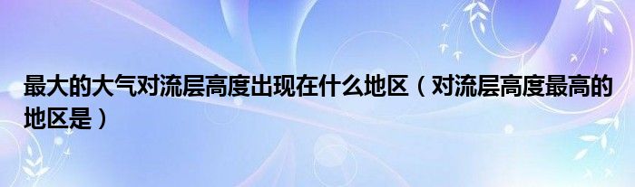 关于最大的大气对流层高度出现在什么地区,对流层高度最高的地区是这个很多人还不知道,今天菲菲来为大家解答以上的问题,现在让我们一起来看看吧!
