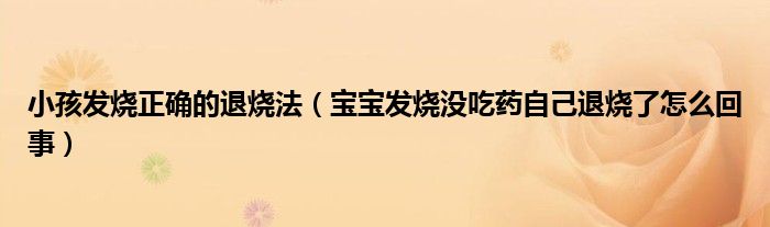 大家好,乐天来为大家解答以下的问题,小孩发烧正确的退烧法,宝宝发烧没吃药自己退烧了怎么回事很多人还不知道,现在让我们一起来看看吧!