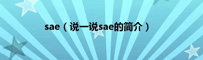 夏弥来为大家解答以下的问题,sae,说一说sae的简介,现在让我们一起来看看吧!