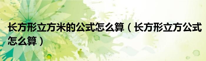 大家好,小晋来为大家解答以下问题,关于长方形立方米的公式怎么算,长方形立方公式怎么算很多人还不知道,今天让我们一起来看看吧!