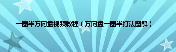 大家好,综合小编来为大家讲解下。一圈半方向盘视频教程,方向盘一圈半打法图解这个很多人还不知道,现在让我们一起来看看吧!