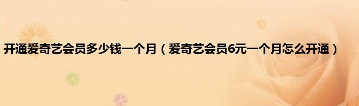 大家好,综合小编来为大家讲解下开通爱奇艺会员多少钱一个月,爱奇艺会员6元一个月怎么开通这个很多人还不知道,现在让我们一起来看看吧!