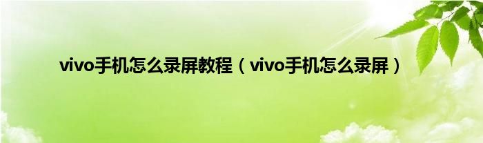 vivo手机怎么录屏教程(vivo手机怎么录屏)