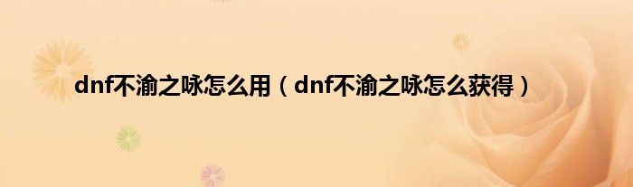 大家好,综合小编来为大家讲解下dnf不渝之咏怎么用,dnf不渝之咏怎么获得这个很多人还不知道,现在让我们一起来看看吧!