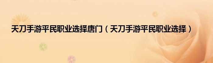 大家好,综合小编来为大家讲解下天刀手游平民职业选择唐门,天刀手游平民职业选择这个很多人还不知道,现在让我们一起来看看吧!