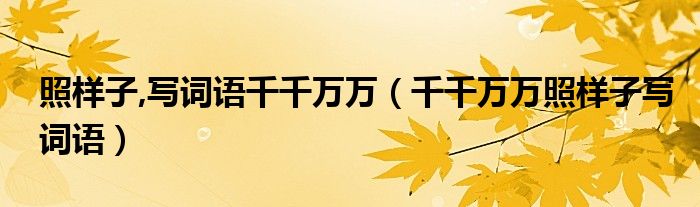 大家好,小晋来为大家解答以下问题,关于照样子,写词语千千万万,千千万万照样子写词语很多人还不知道,今天让我们一起来看看吧!