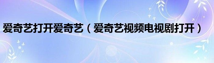 大家好,小晋来为大家解答以下问题,关于爱奇艺打开爱奇艺,爱奇艺视频电视剧打开很多人还不知道,今天让我们一起来看看吧!
