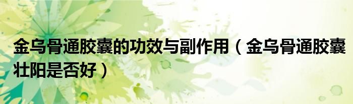 大家好,乐天来为大家解答以下的问题,金乌骨通胶囊的功效与副作用,金乌骨通胶囊壮阳是否好很多人还不知道,现在让我们一起来看看吧!