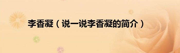夏弥来为大家解答以下的问题,李香凝,说一说李香凝的简介,现在让我们一起来看看吧!