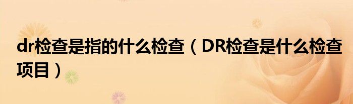 大家好,乐天来为大家解答以下的问题,dr检查是指的什么检查,DR检查是什么检查项目很多人还不知道,现在让我们一起来看看吧!