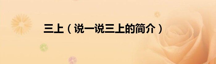 夏弥来为大家解答以下的问题,三上,说一说三上的简介,现在让我们一起来看看吧!