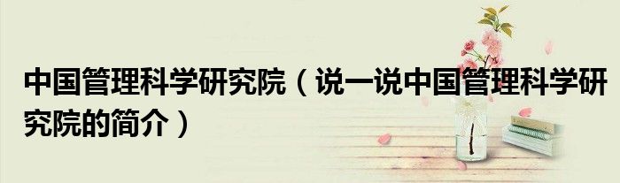 夏弥来为大家解答以下的问题,中国管理科学研究院,说一说中国管理科学研究院的简介,现在让我们一起来看看吧!