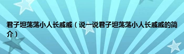 君子坦荡荡小人长戚戚(说一说君子坦荡荡小人长戚戚的简介)