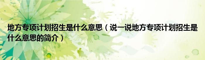 夏弥来为大家解答以下的问题,地方专项计划招生是什么意思,说一说地方专项计划招生是什么意思的简介,现在让我们一起来看看吧!