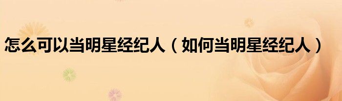关于怎么可以当明星经纪人,如何当明星经纪人这个很多人还不知道,今天菲菲来为大家解答以上的问题,现在让我们一起来看看吧!