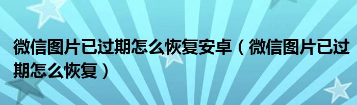 关于微信图片已过期怎么恢复安卓,微信图片已过期怎么恢复这个很多人还不知道,今天菲菲来为大家解答以上的问题,现在让我们一起来看看吧!