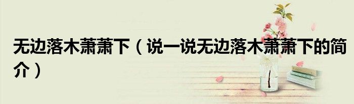 夏弥来为大家解答以下的问题,无边落木萧萧下,说一说无边落木萧萧下的简介,现在让我们一起来看看吧!