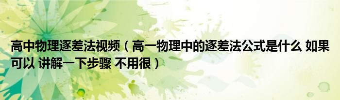 关于高中物理逐差法视频,高一物理中的逐差法公式是什么 如果可以 讲解一下步骤 不用很这个很多人还不知道,今天菲菲来为大家解答以上的问题,现在让我们一起来看看吧!