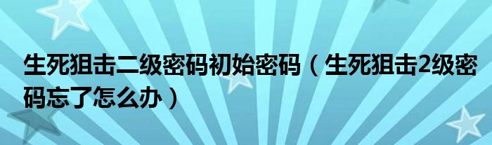 关于生死狙击二级密码初始密码,生死狙击2级密码忘了怎么办这个很多人还不知道,今天菲菲来为大家解答以上的问题,现在让我们一起来看看吧!
