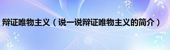 夏弥来为大家解答以下的问题,辩证唯物主义,说一说辩证唯物主义的简介,现在让我们一起来看看吧!