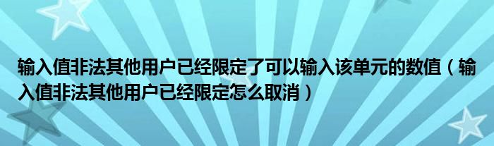 关于输入值非法其他用户已经限定了可以输入该单元的数值,输入值非法其他用户已经限定怎么取消这个很多人还不知道,今天菲菲来为大家解答以上的问题,现在让我们一起来看看吧!