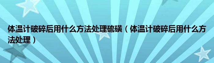 关于体温计破碎后用什么方法处理硫磺,体温计破碎后用什么方法处理这个很多人还不知道,今天菲菲来为大家解答以上的问题,现在让我们一起来看看吧!