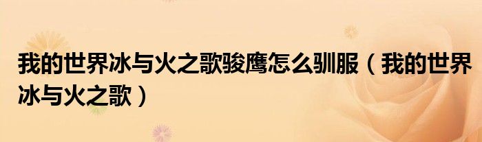 关于我的世界冰与火之歌骏鹰怎么驯服,我的世界冰与火之歌这个很多人还不知道,今天菲菲来为大家解答以上的问题,现在让我们一起来看看吧!