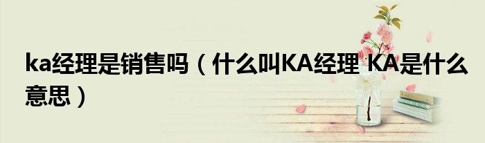 关于ka经理是销售吗,什么叫KA经理 KA是什么意思这个很多人还不知道,今天菲菲来为大家解答以上的问题,现在让我们一起来看看吧!