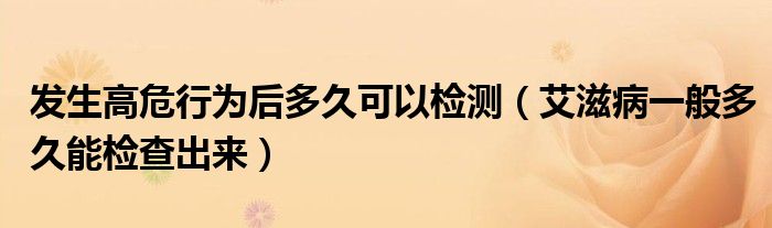 大家好,乐天来为大家解答以下的问题,发生高危行为后多久可以检测,艾滋病一般多久能检查出来很多人还不知道,现在让我们一起来看看吧!