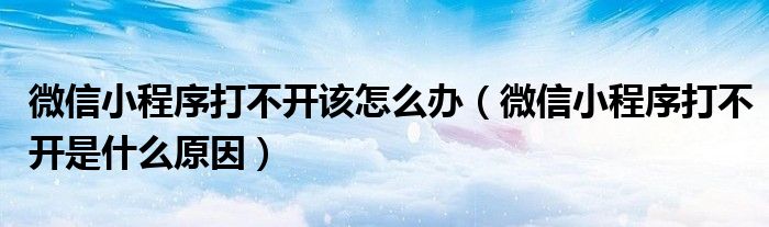 微信小程序打不开该怎么办(微信小程序打不开是什么原因)