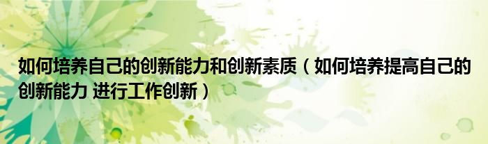关于如何培养自己的创新能力和创新素质,如何培养提高自己的创新能力 进行工作创新这个很多人还不知道,今天菲菲来为大家解答以上的问题,现在让我们一起来看看吧!