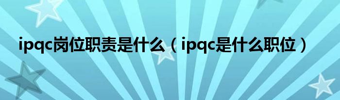 关于ipqc岗位职责是什么,ipqc是什么职位这个很多人还不知道,今天菲菲来为大家解答以上的问题,现在让我们一起来看看吧!