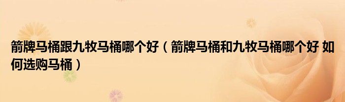 关于箭牌马桶跟九牧马桶哪个好,箭牌马桶和九牧马桶哪个好 如何选购马桶这个很多人还不知道,今天菲菲来为大家解答以上的问题,现在让我们一起来看看吧!