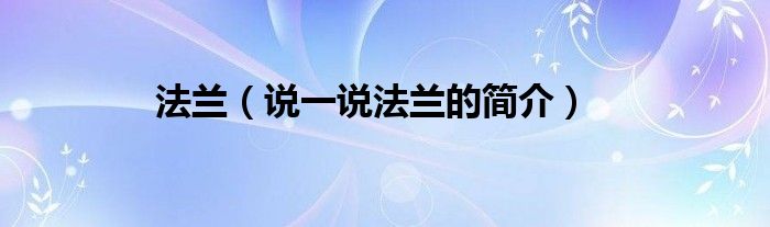 夏弥来为大家解答以下的问题,法兰,说一说法兰的简介,现在让我们一起来看看吧!