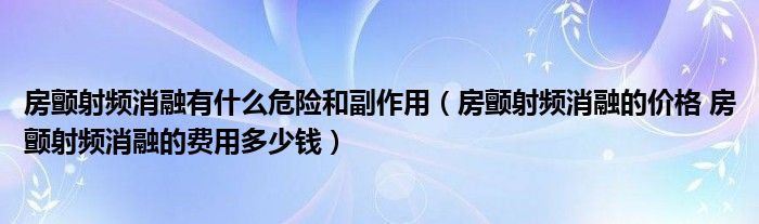 大家好,乐天来为大家解答以下的问题,房颤射频消融有什么危险和副作用,房颤射频消融的价格 房颤射频消融的费用多少钱很多人还不知道,现在让我们一起来看看吧!